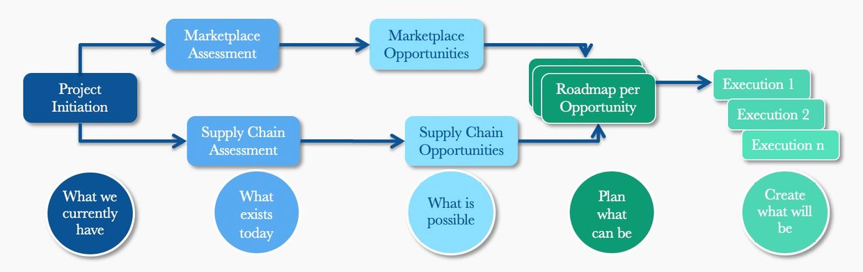 We start with an in-depth understanding of your business in the context of its existing markets and supply chains. We then identify market opportunities for growth, as well as the ability for supply chains to help you achieve that growth. We conclude the process by providing practical roadmaps, detailed execution plans, and hands-on support with implementation.